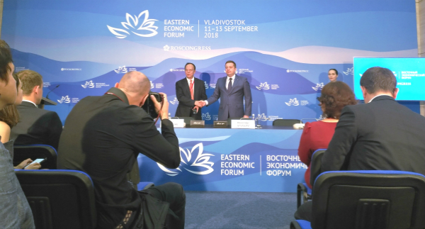 2018年9月11日,在第四屆東方經(jīng)濟(jì)論壇期間,中國文化藝術(shù)有限公司(下稱“中藝公司”)與俄羅斯會展基金會(Roscongress)舉行戰(zhàn)略合作簽約儀式,就聯(lián)合推動中俄文化藝術(shù)品跨境交易平臺項(xiàng)目達(dá)成協(xié)議。中藝公司董事長呂長河先生及俄羅斯會展基金會董事長亞歷山大·斯圖格列夫先生作為雙方代表簽約,俄羅斯濱海邊疆區(qū)行政長官與黑龍江省市相關(guān)領(lǐng)導(dǎo)等見證儀式。